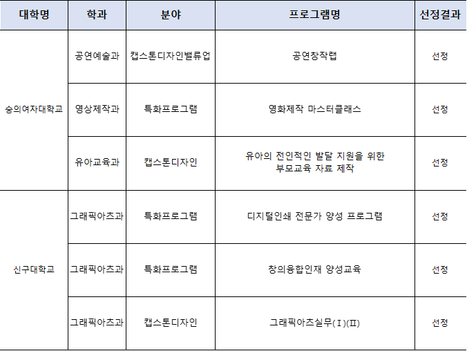동국대학교 LINC+사업단에서 추진한 대학협력사업에 매년 많은 관심과 적극적인 참여에 깊은 감사드리며, 다음과 같이 선정결과를 안내드립니다.