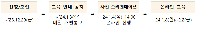 ▶ 교육기간 : 2024년 1월 8일(월) ~ 2월 2일(금) (4주)