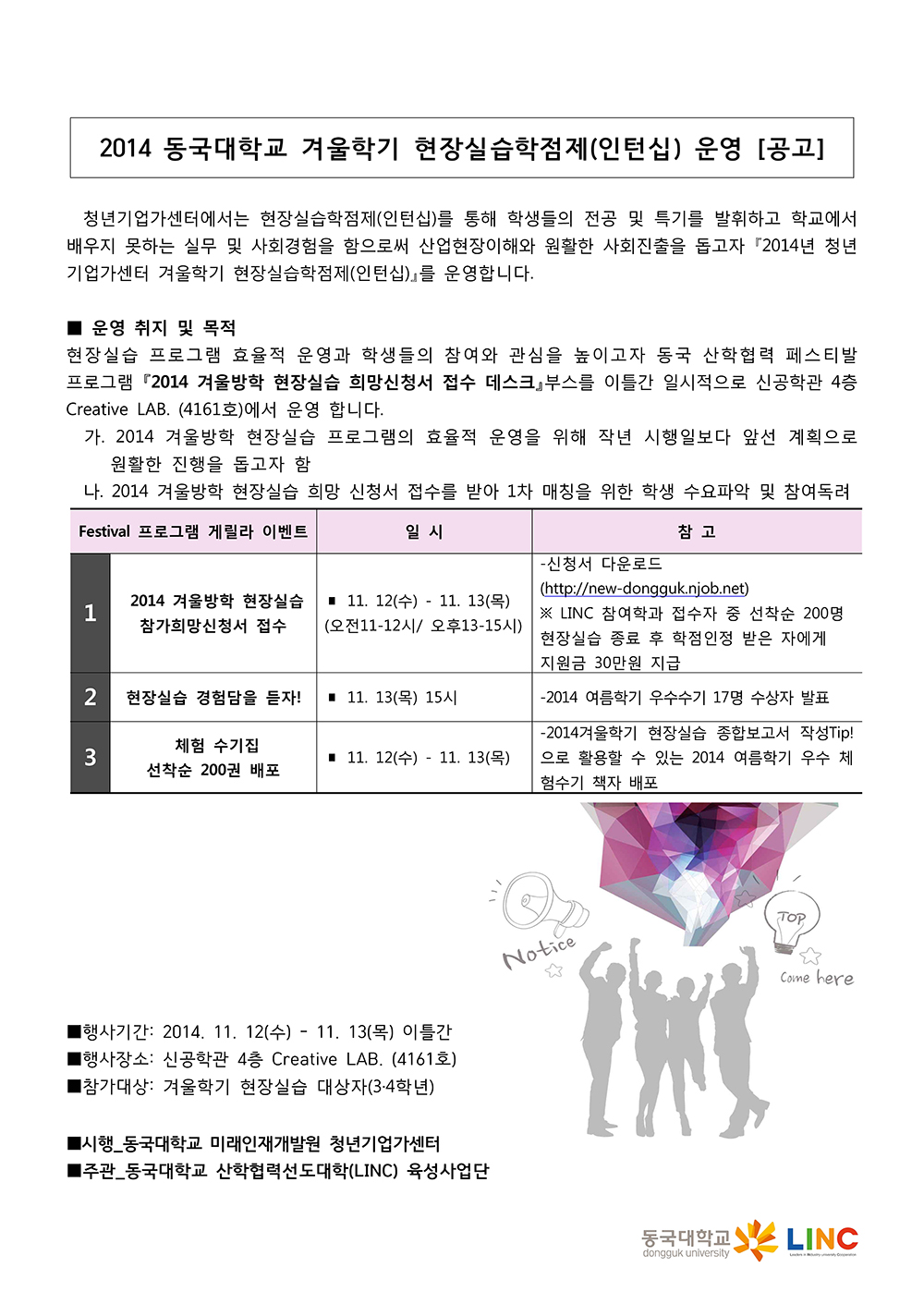 2014 겨울방학 현장실습 희망신청서 접수 안내
