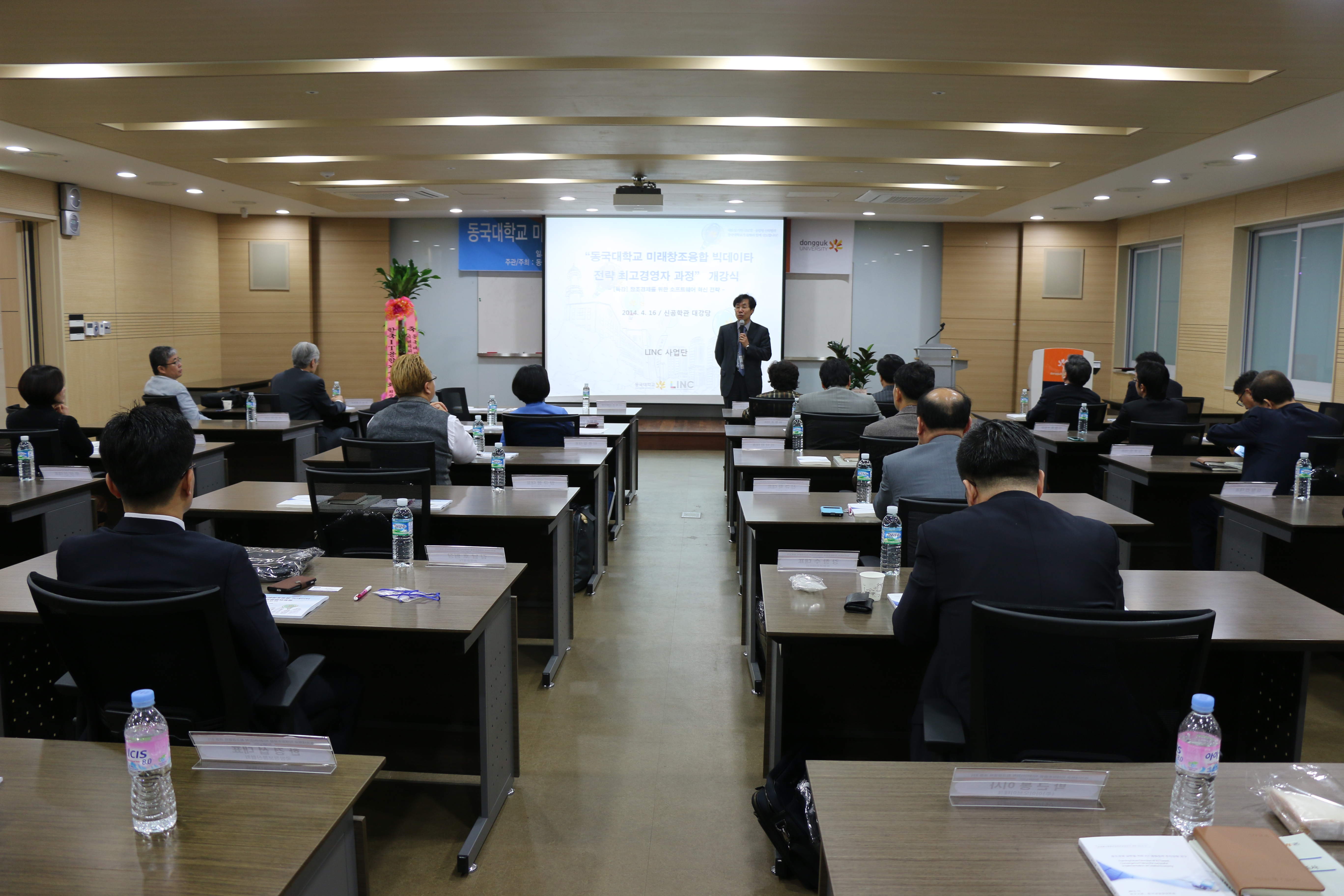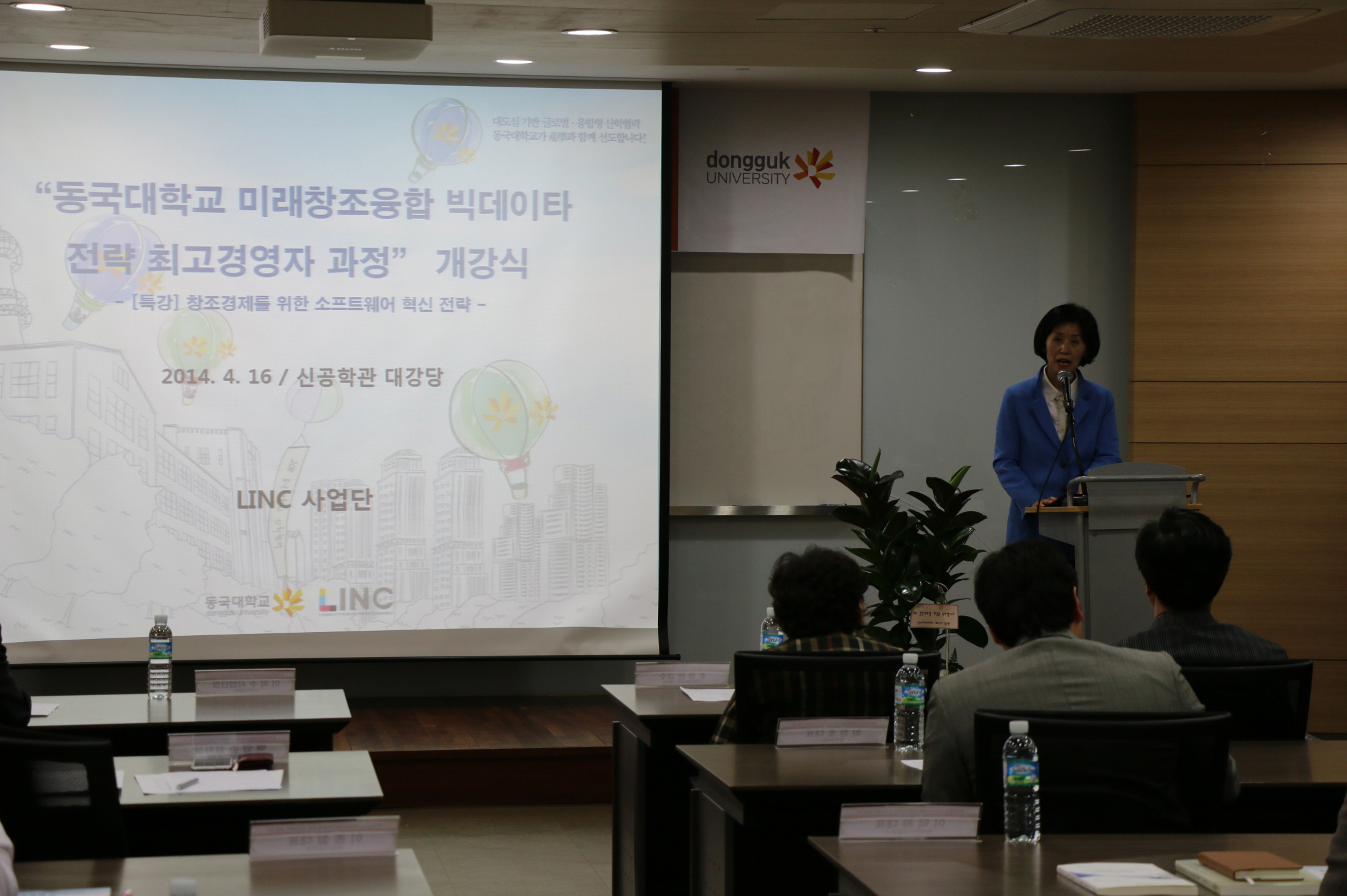 동국대학교 LINC사업단(단장 이의수)은 16일 동국대 신공학관에서 미래창조융합 빅데이터 전략 최고경영자과정 개강식을 가졌다.