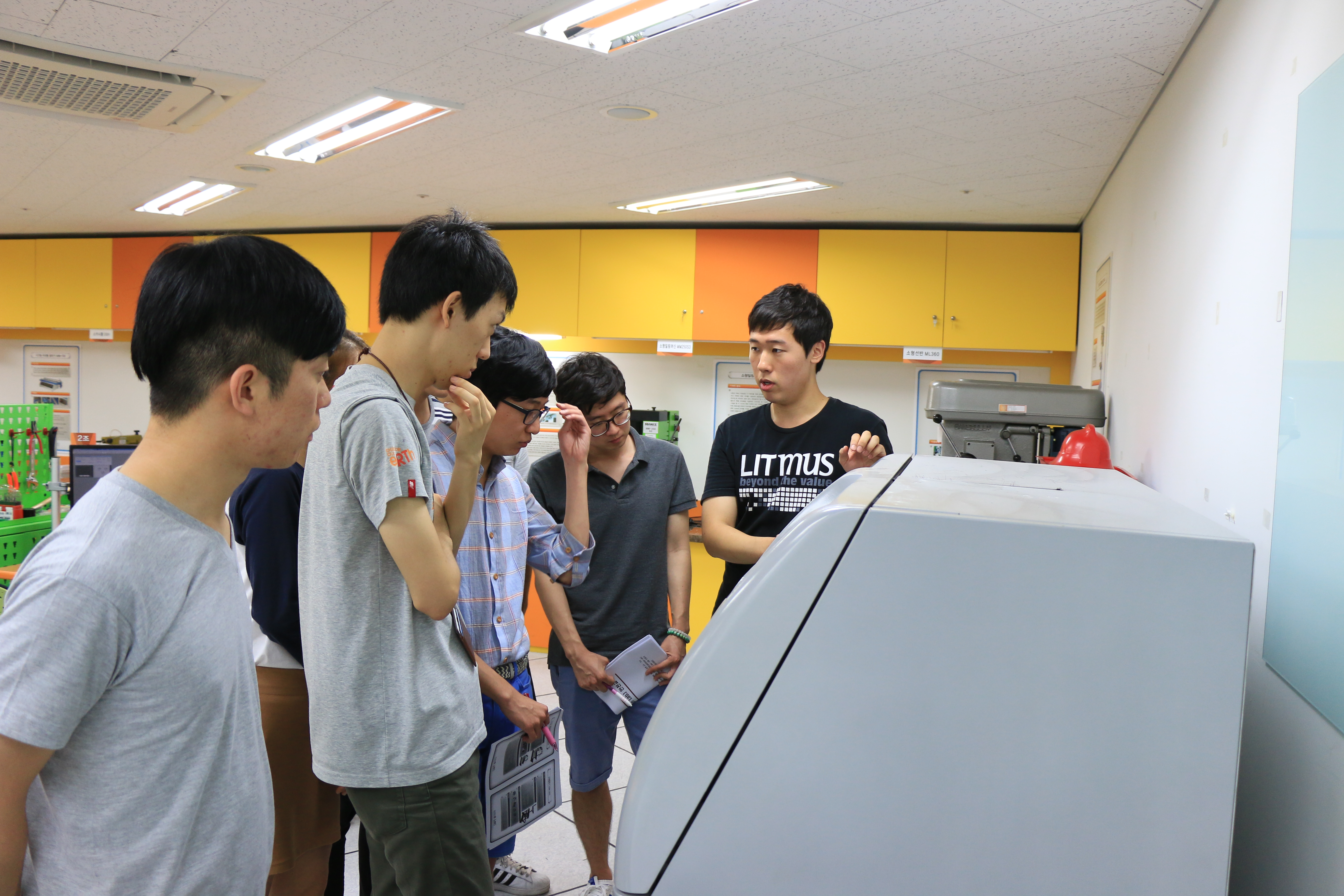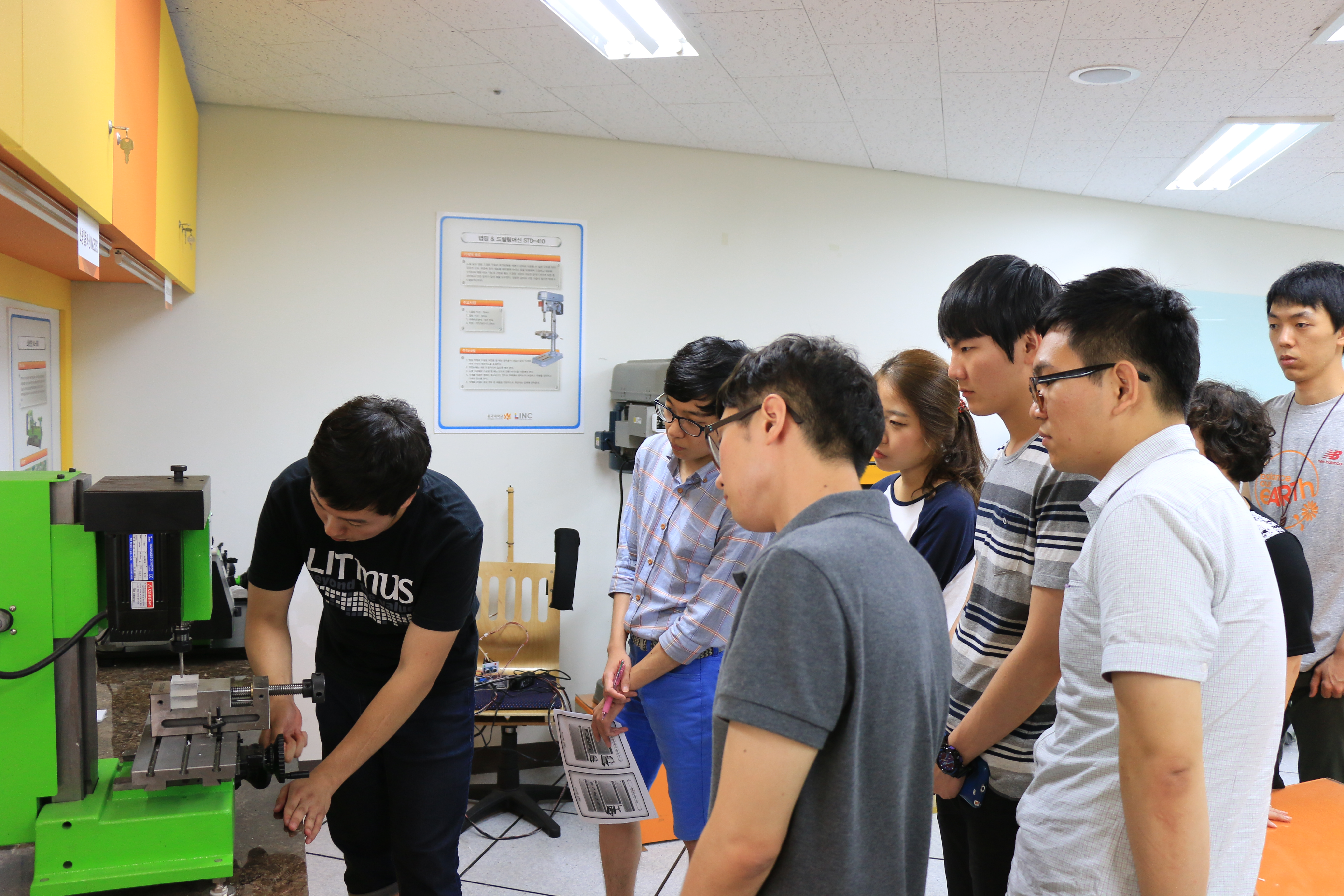 산학인력양성센터에서는 2014년 7월 8일 오후 2시부터 5시까지 융합 캡스톤디자인 참여학생을 대상으로 캡스톤디자인실(Design Lab.) 안전교육을 실시하였다. 이날 교육에서는 실습실에 있는 공작기계에 대한 설명 및 안전교육 실시 후 개인별로 직접 공작기계를 작동해보는 실습을 진행하였다.