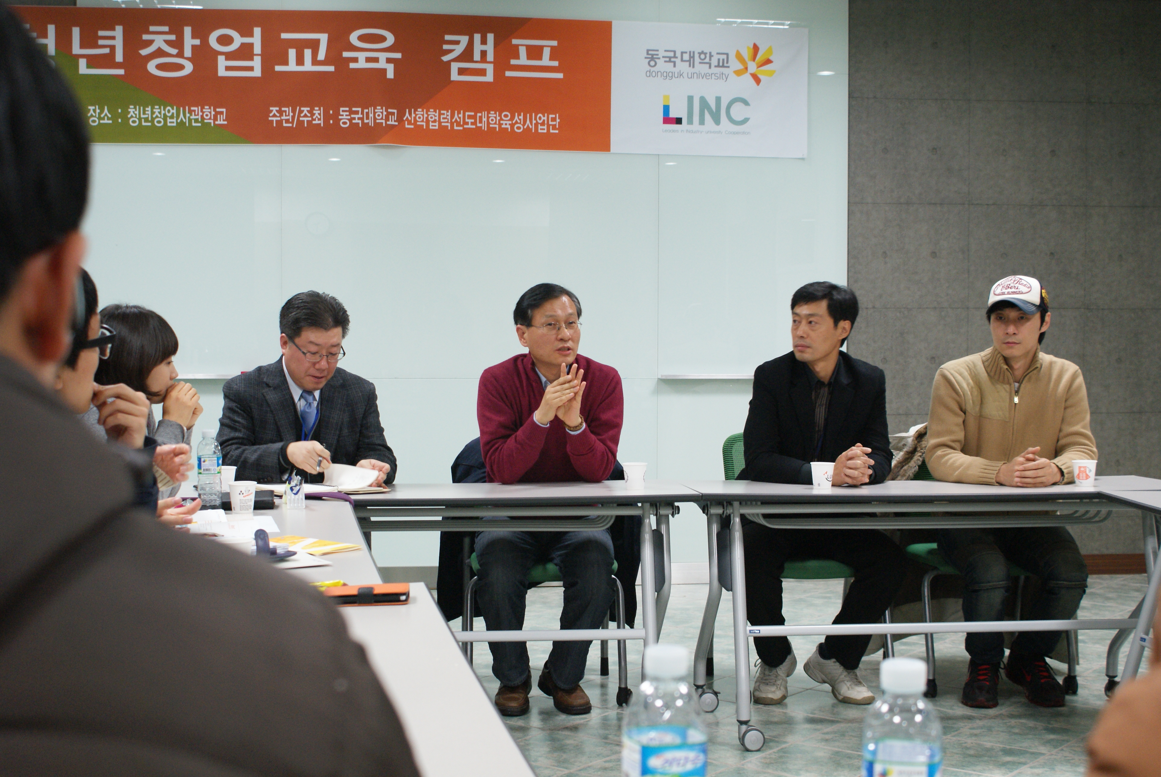 동국청년의 올바른 기업가마인드 함양을 위해 '대한민국 청년창업의 요람'인 청년창업사관학교를 방문(2012년 12월 07일)하여 기업가마인즈에 관한 전문가 특강, 청년CEO들의 실전 창업스토리를 전수하는 간담회와 멘토링 및 사관학교 탐방을 진행.