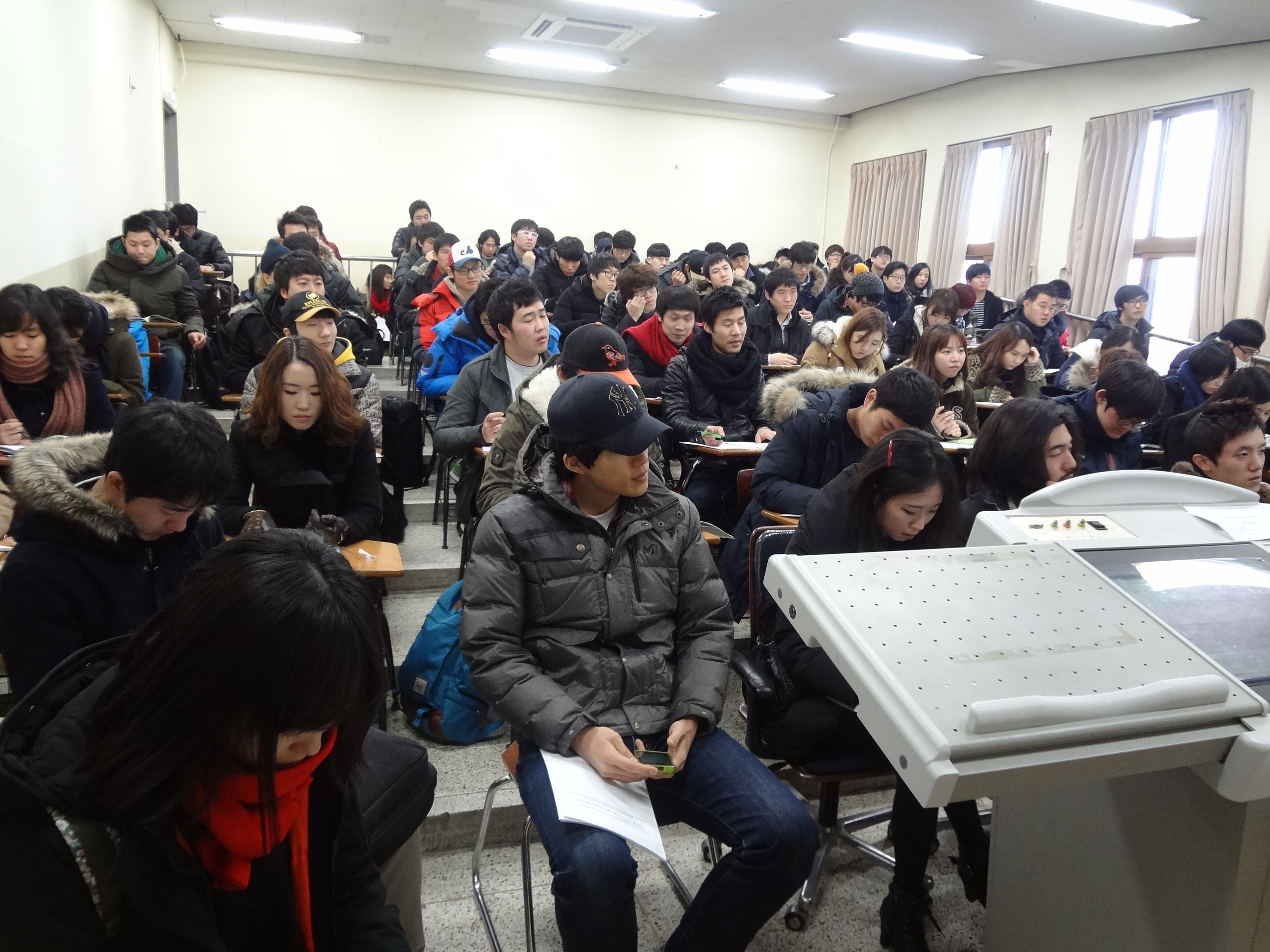 2012년 겨울계절학기 현장실습(인턴십)학점제에 참여하는 학생들을 대상으로 원흥관 E127에서 학점신청절차안내 및 직무교육 실시.