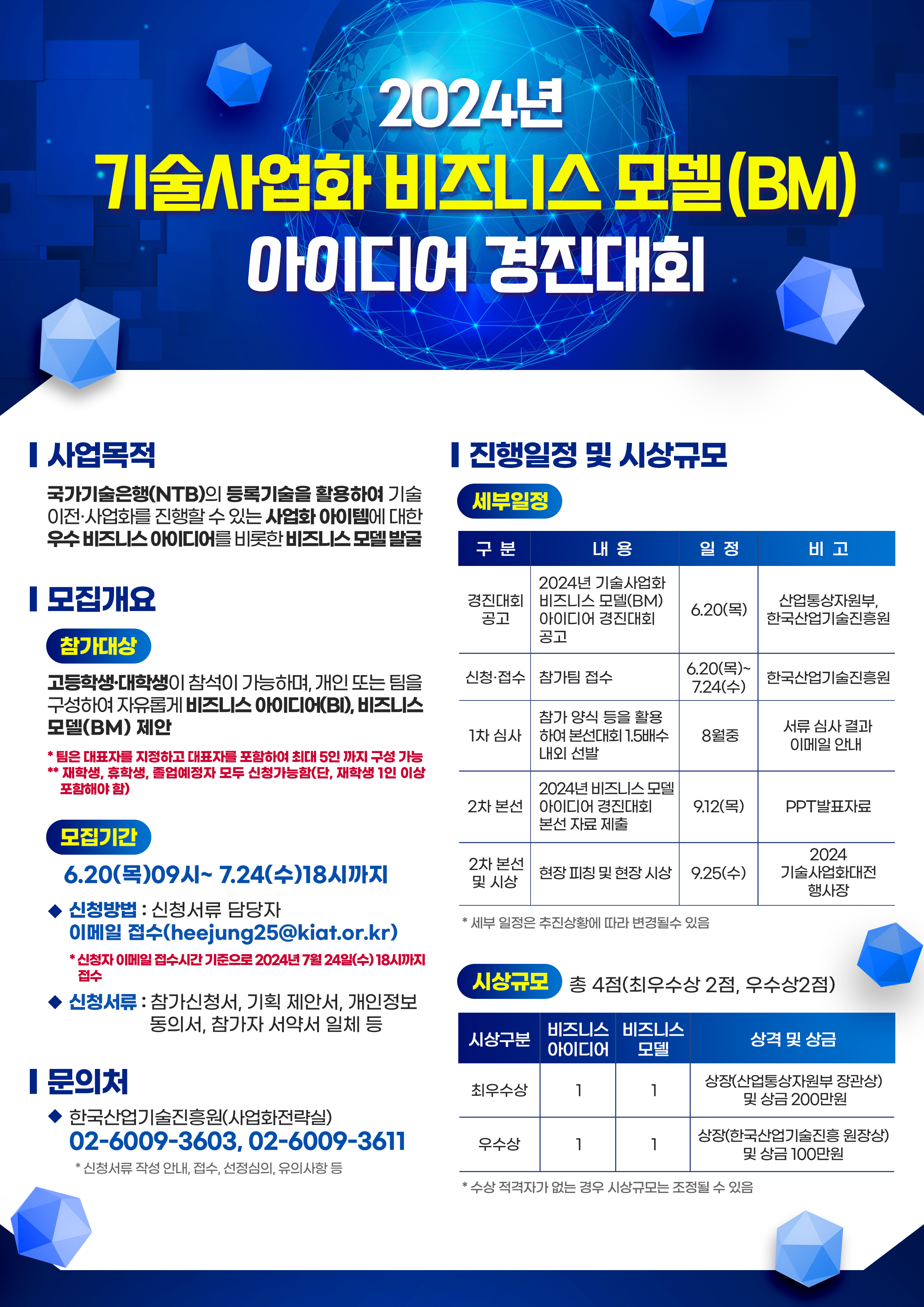 □ 대회명: 2024년 기술사업화 비즈니스 모델(BM) 아이디어 경진대회