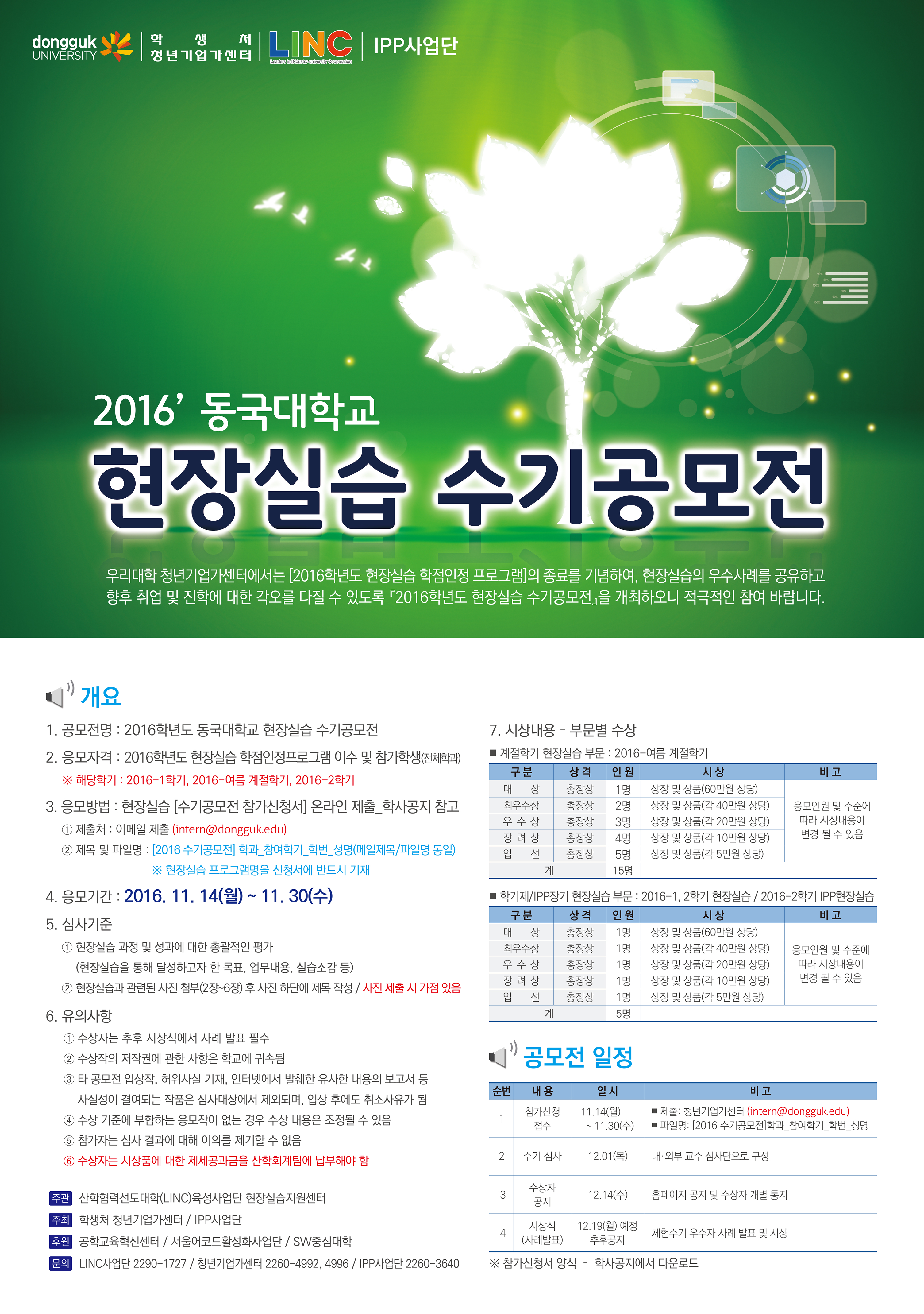 2016 동국대학교 현장실습 수기공모전 개최 안내