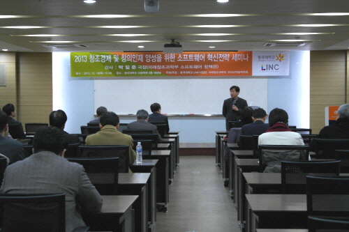‘2013 창조경제 및 창의인재 양성을 위한 소프트웨어 혁신전략 세미나’는 동국대학교 LINC사업단이 IT BT CT 융합형 창의 인재양성을 위해, 21세기 상상력과 창의력이 중시되는 창조경제 시대의 국가경쟁력을 견인하기 위한 ‘창조경제로의 패러다임 전환을 통해 창조경제 생태계 조성’의 일환으로 실시됐다.